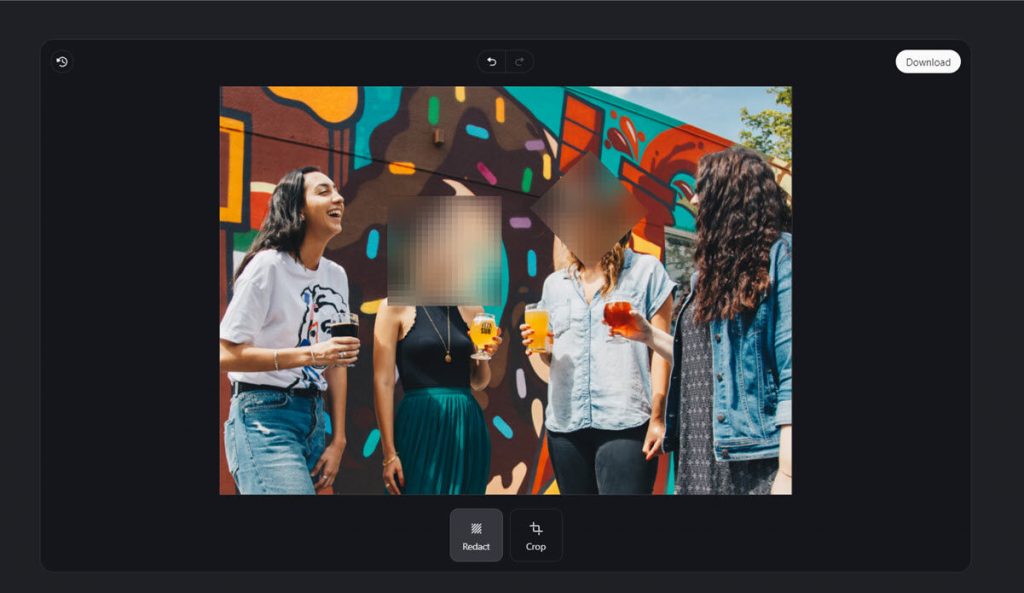 Il primo bottone Redact ci permette di poter andare a censurare l’immagine nella porzione che ci serve creando un effetto pixel molto pulito che però svolge bene la sua funzione. Il secondo bottone è un plus per poter ridurre o tagliare l’immagine.
