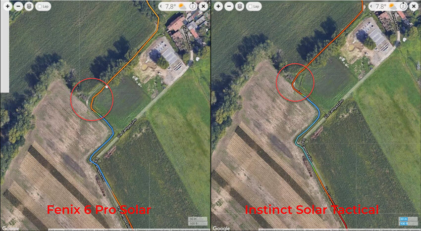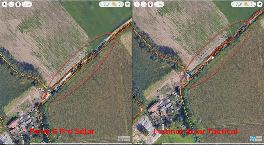 Non voglio elencare tutto ciò che è positivo o negativo, ma vi dico solo quello che non mi è piaciuto e che sinceramente non mi aspettavo, e in questo caso parlo della traccia registrata. Su entrambi è stato impostato GPS + Glonass ma il Fenix si è perso. Molta imprecisione, troppo grossolana in alcuni frangenti rendendo quasi “ridicola” e impari il paragone.
