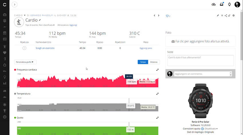 Ho voluto mettere sotto “sforzo” il Fenix 6 Pro Solar indossandolo in una attività cardio. Dico sotto sforzo perchè nel mio caso, avendo un polso magro, anche stringendolo bene non lo sentivo mai stabile e fisso sul polso, inoltre essendo un attività cardio deve essere in grado di star dietro ai picchi cardiaci.