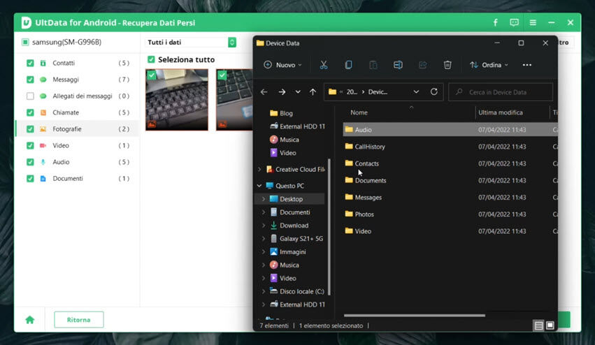 Cliccando su Recupera ci verrà chiesto dove salvare i file. Infatti questi non vengono ripristinati direttamente sul nostro dispositivo, ma bensì sul nostro pc. In pochissimo tempo avremo una cartella ordinata suddivisa per ogni singola voce e con all’interno tutto il contenuto recuperato.